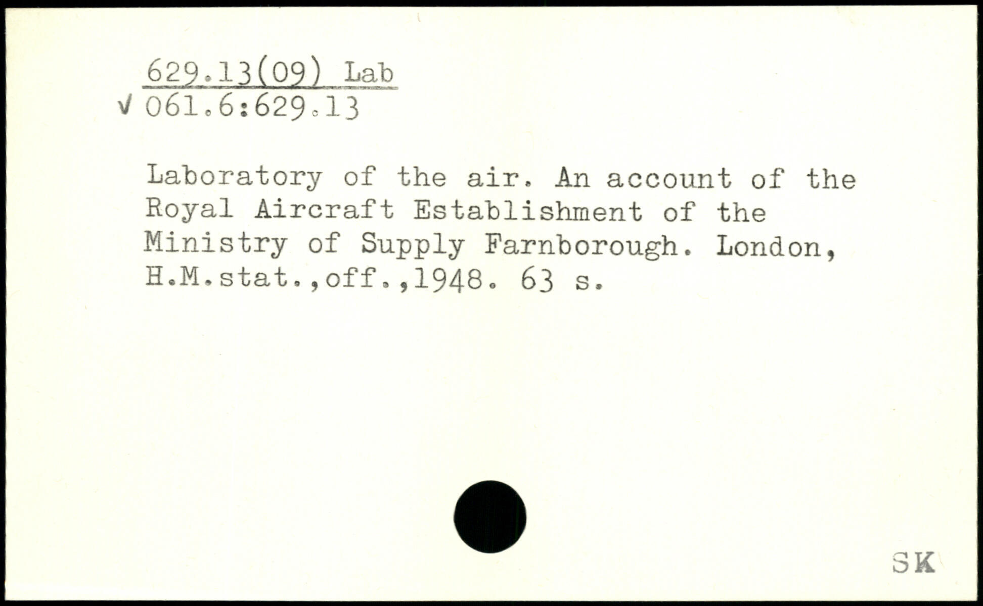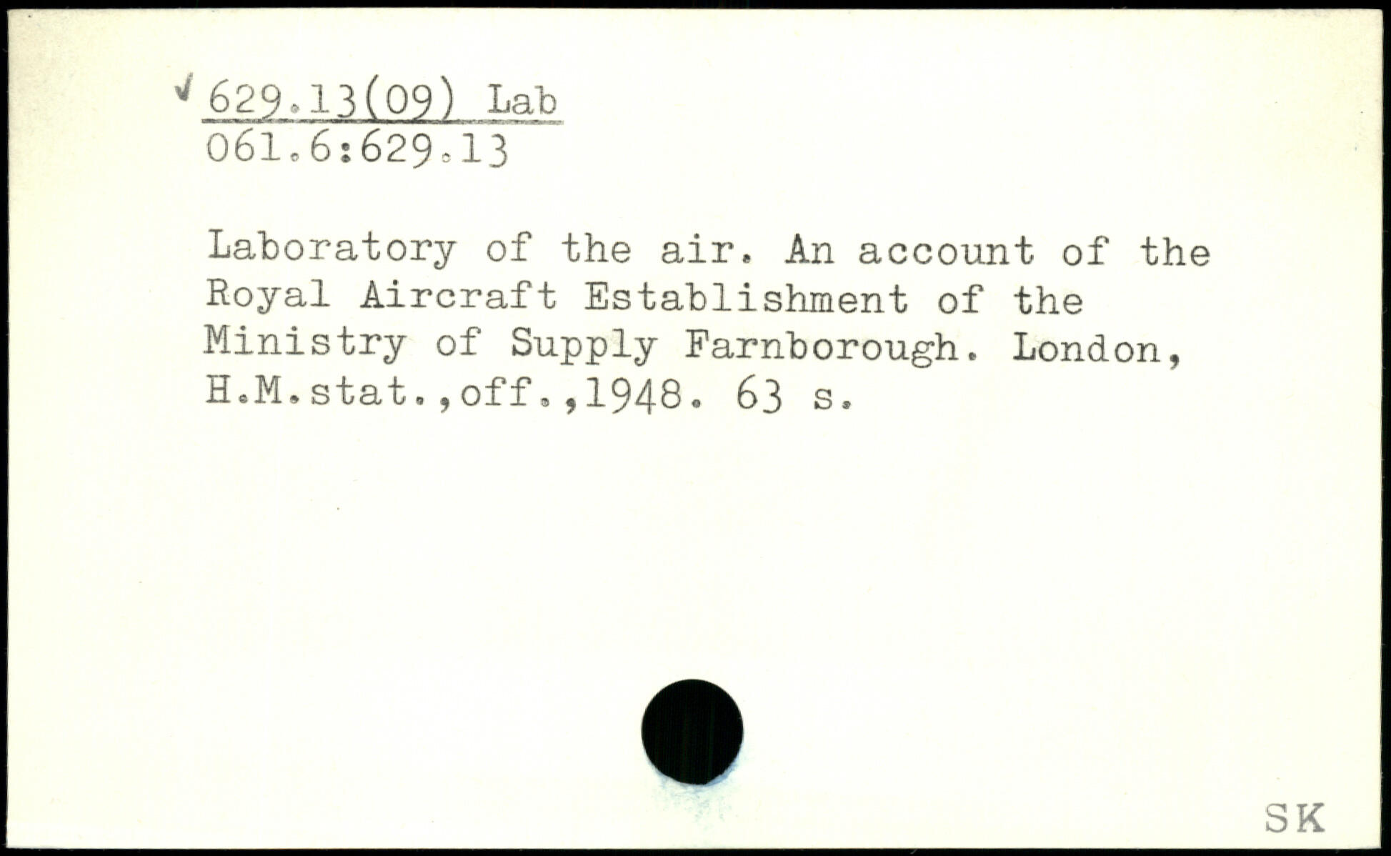Laboratory of the air. An account of the Royal Aircraft Establishment of the Ministry of Supply Farnborough. London, H.M.stat.,off.,1948.
