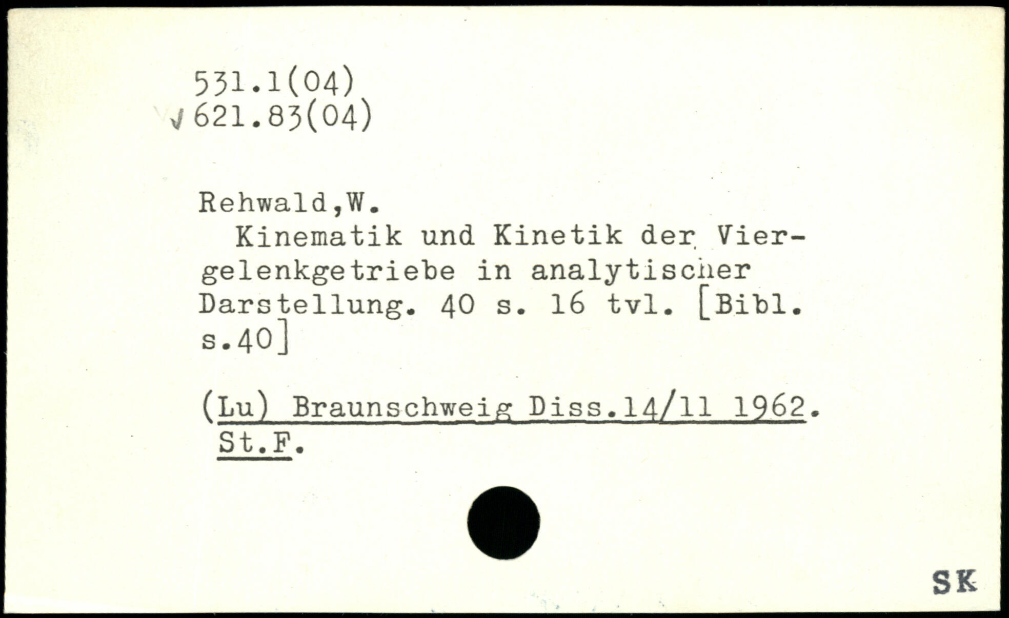 Kinematik und Kinetik der Vier-gelenkge triebe in analytischer Darstellung.