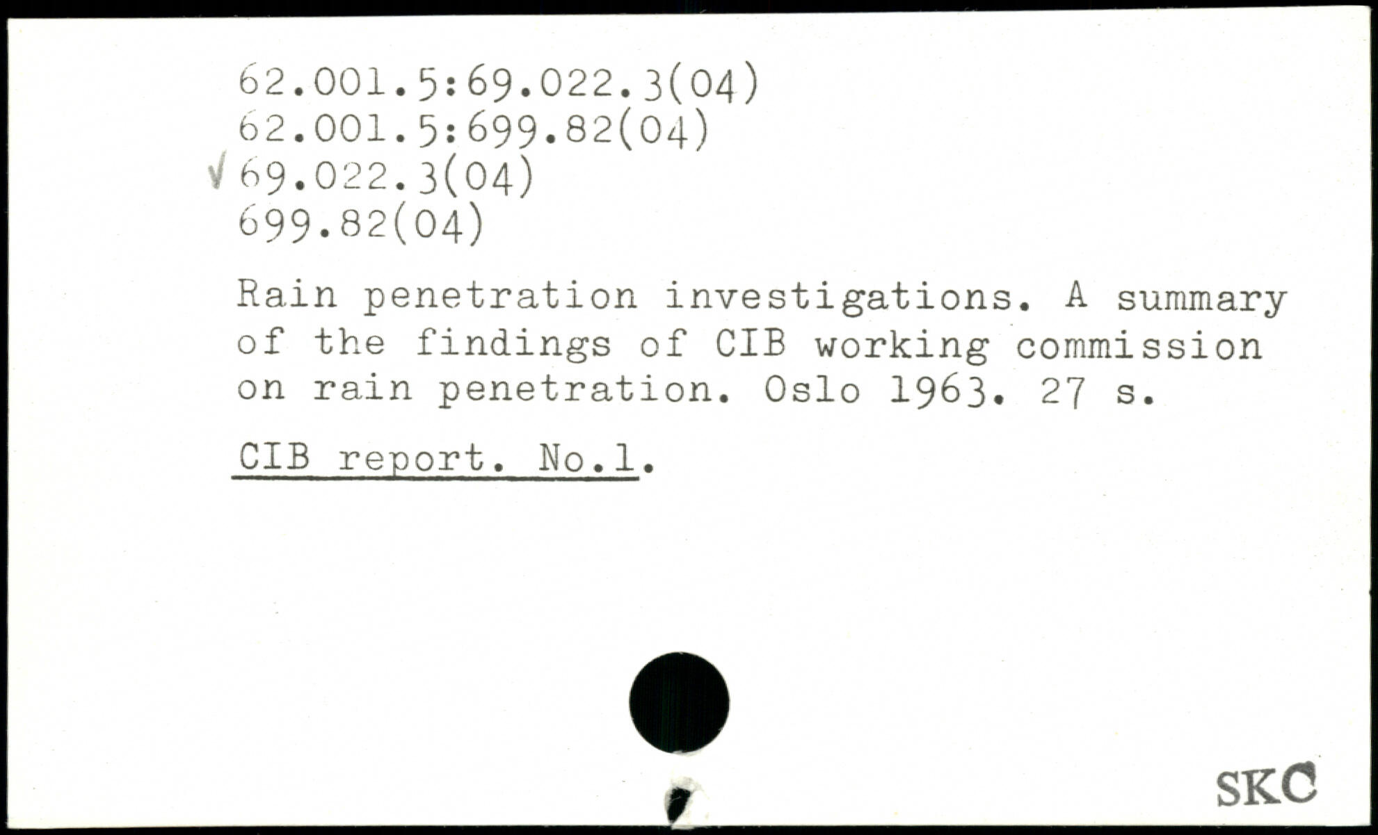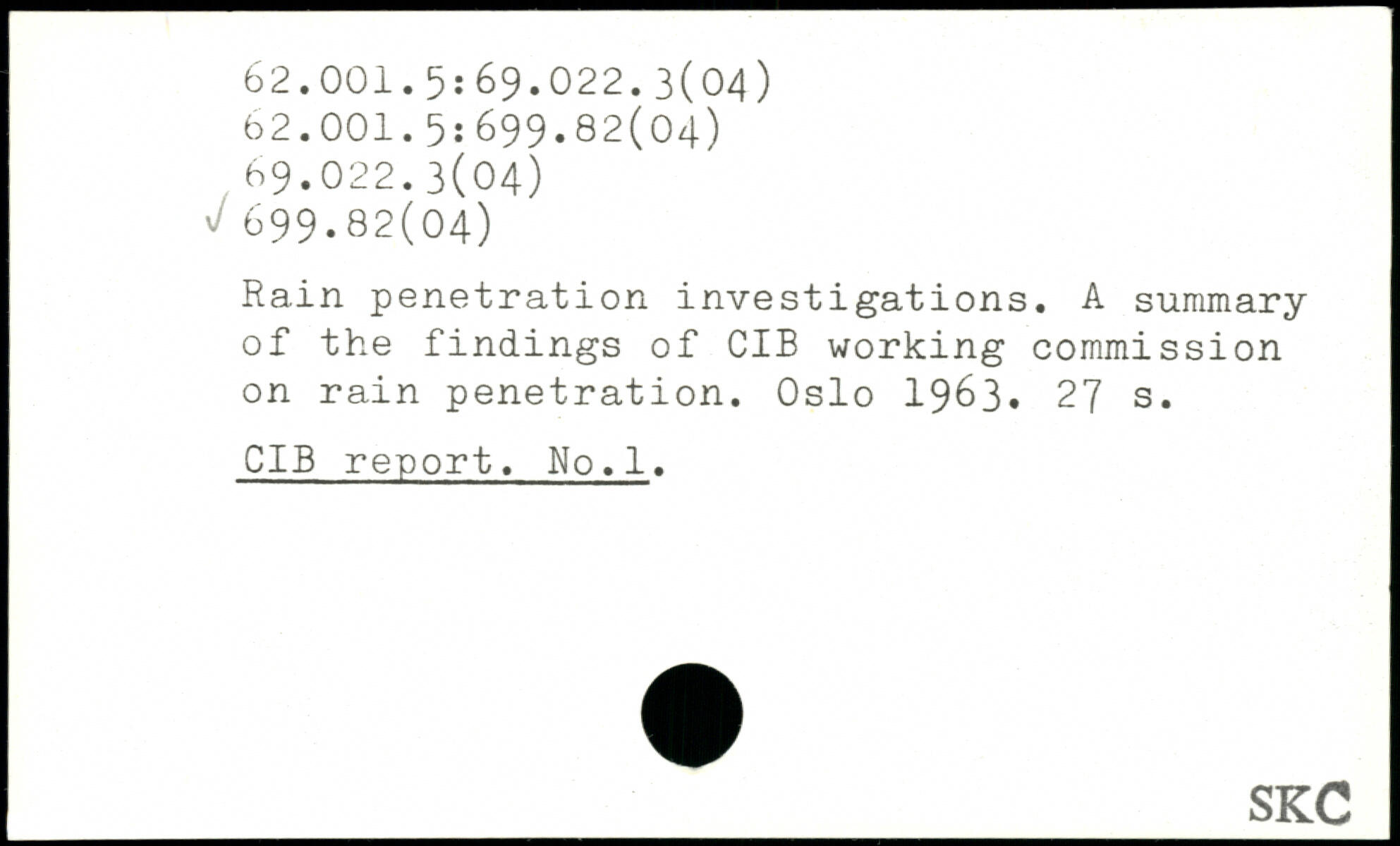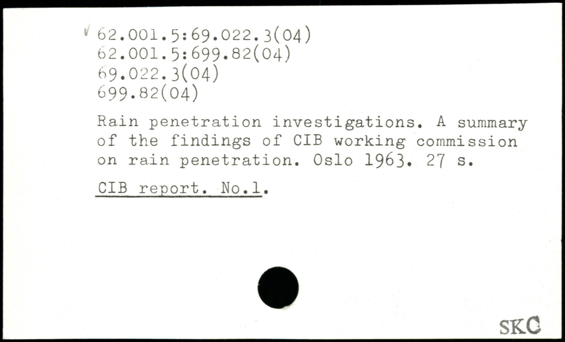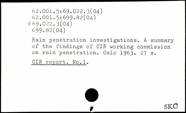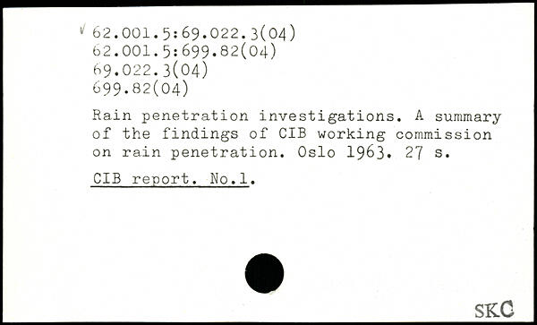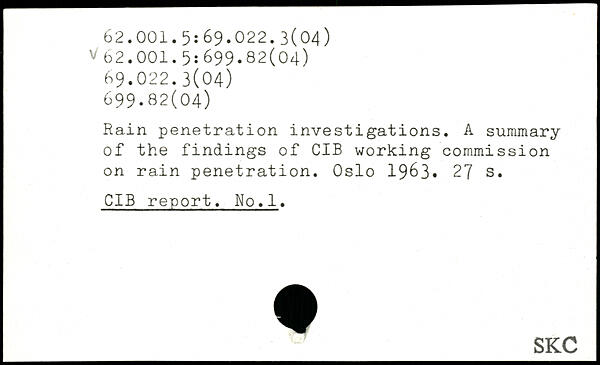 Rain penetration investigations. A summary of the findings of CIB working commission on rain penetration. Oslo 1963.