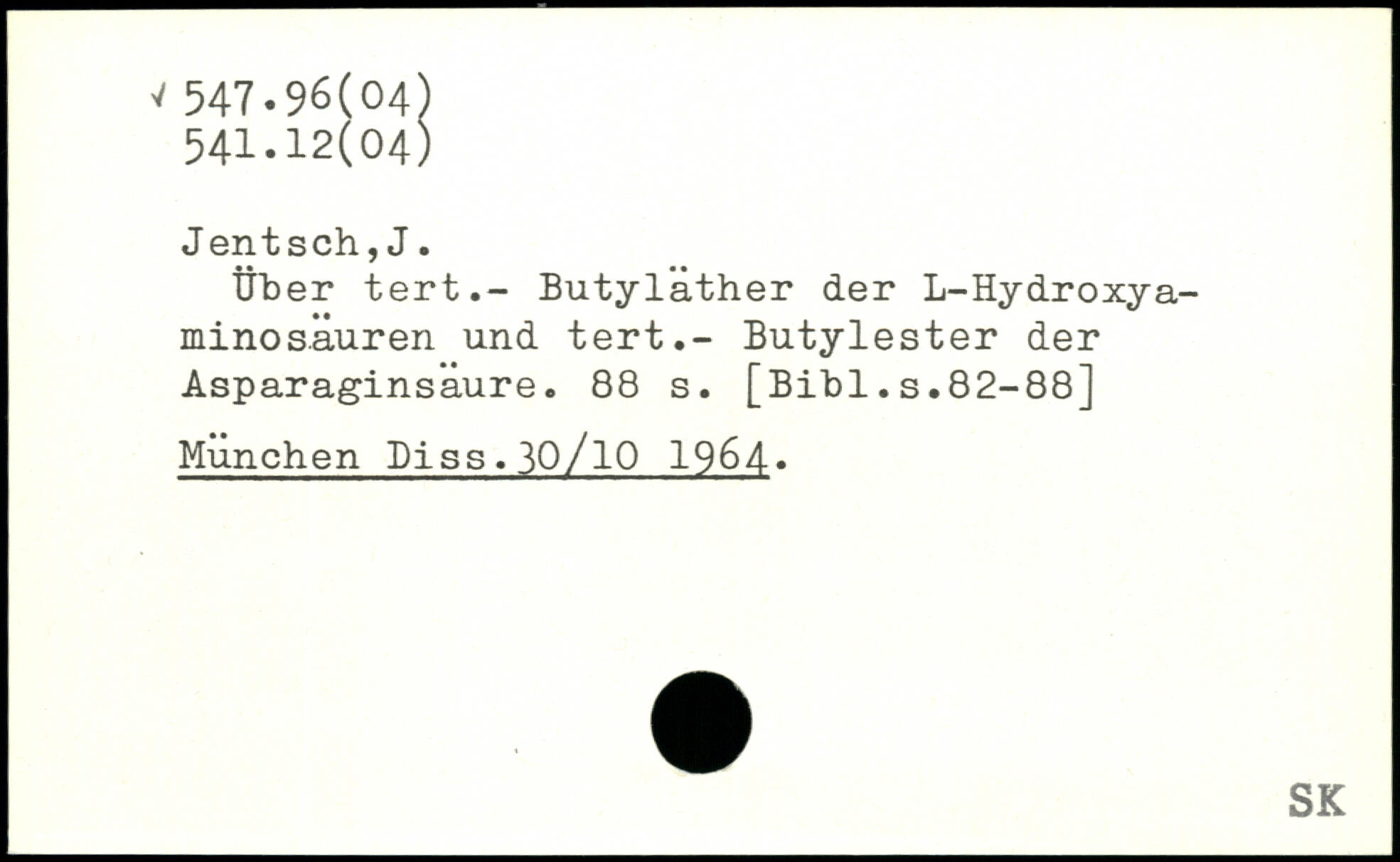 Über tert.- Butyläther der L-Hydroxya-minos.äuren und tert.- Butylester der Asparaginsaure.