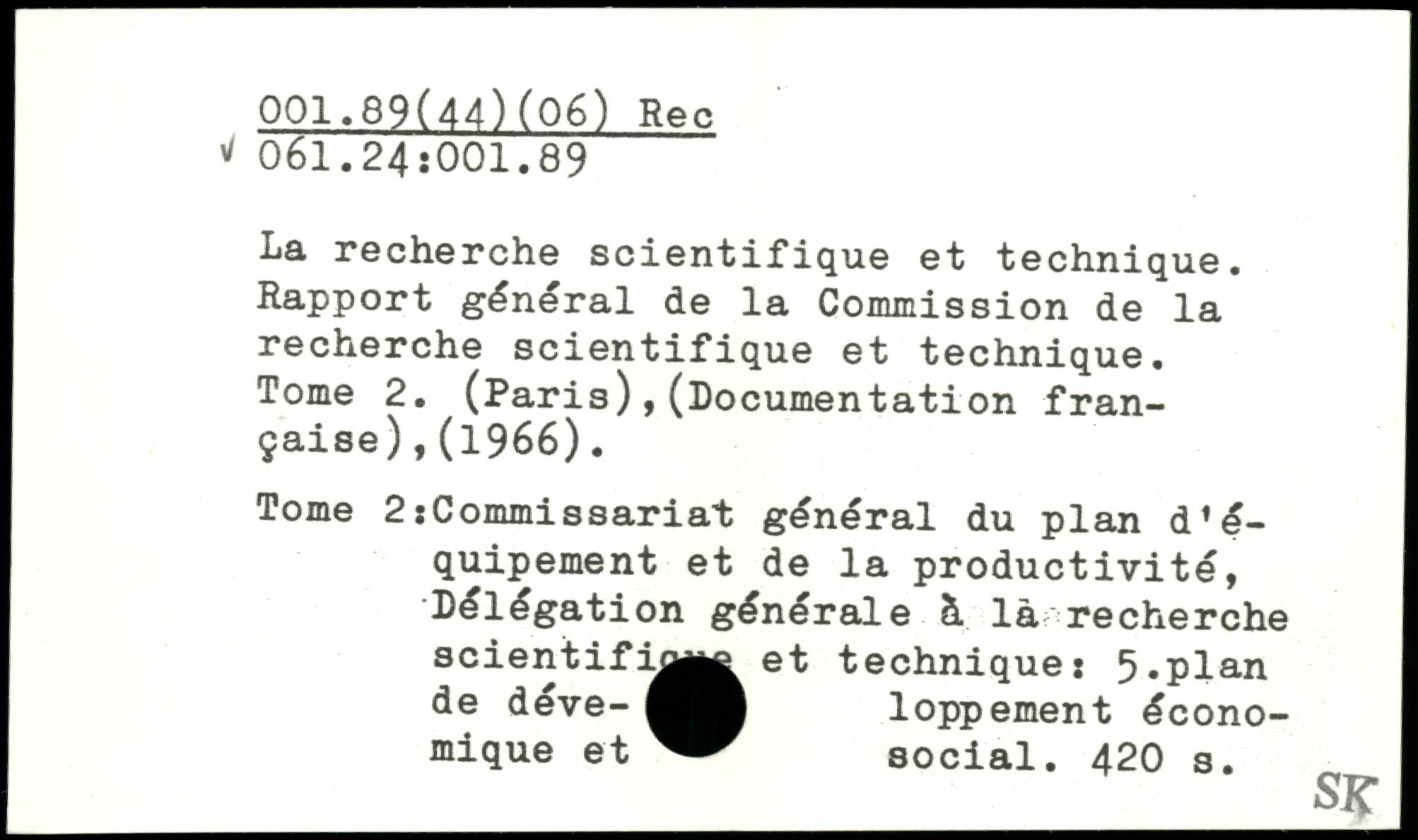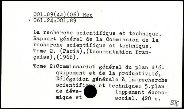 La recherche scientifique et technique. Rapport général de la Commission de la recherche scientifique et technique. Tome 2. (Paris),(Documentation française) ,(1966). Tome 2îCommissariat général du plan d’équipement et de la productivité, .Délégation générale à là^recherche scientifique et technique: 5,plan de déve- loppement économique et social.