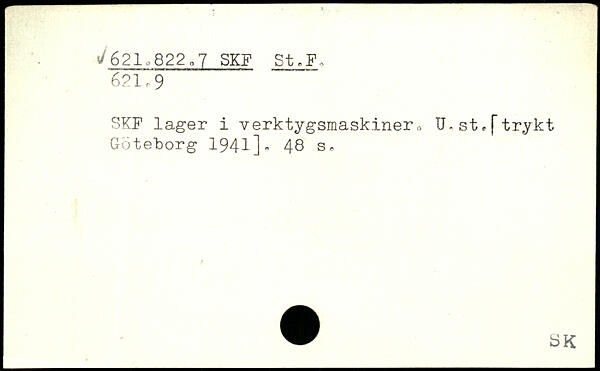 SKF lager i verktygsmaskiner. U-st,[trykt Göteborg 1941]