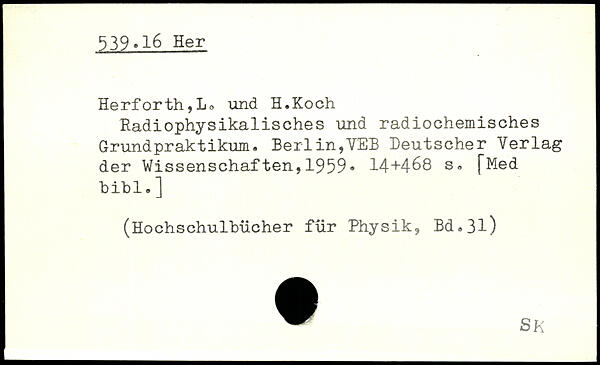 Radiophysikalisches und radiochemisches Grundpraktikum. Berlin,VEB Deutscher Verlag der Wissenschaften,1959.