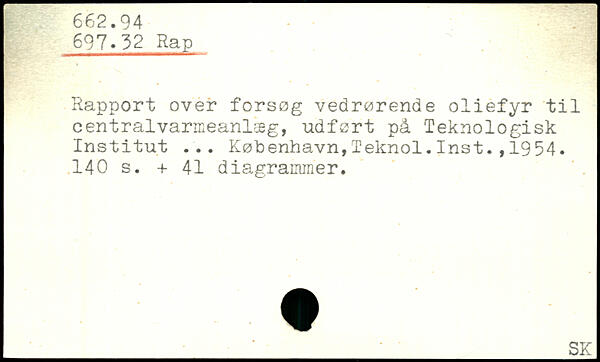Rapport over forsøg vedrørende oliefyr til centralvarmeanlæg, udført på Teknologisk Institut ... København, T elmol. Inst. , 1954.