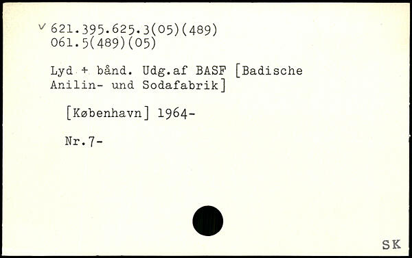 Lyd + bånd. Udg.af BASF [Badische Anilin- und Sodafabrik]