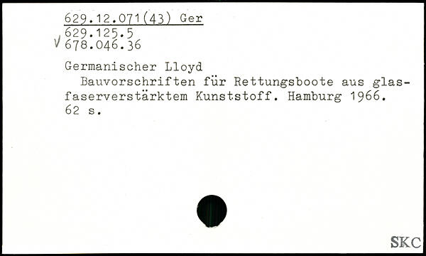 Germanischer Lloyd. Bauvorschriften für Rettungsboote aus glasfaserverstärktem Kunststoff.