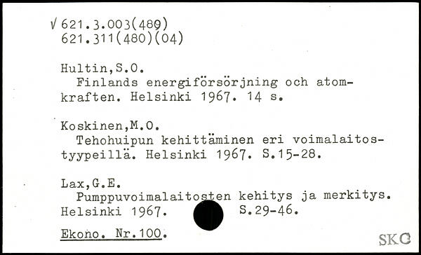 Finlands energiförsörjning och atomkraften. Helsinki 19^7