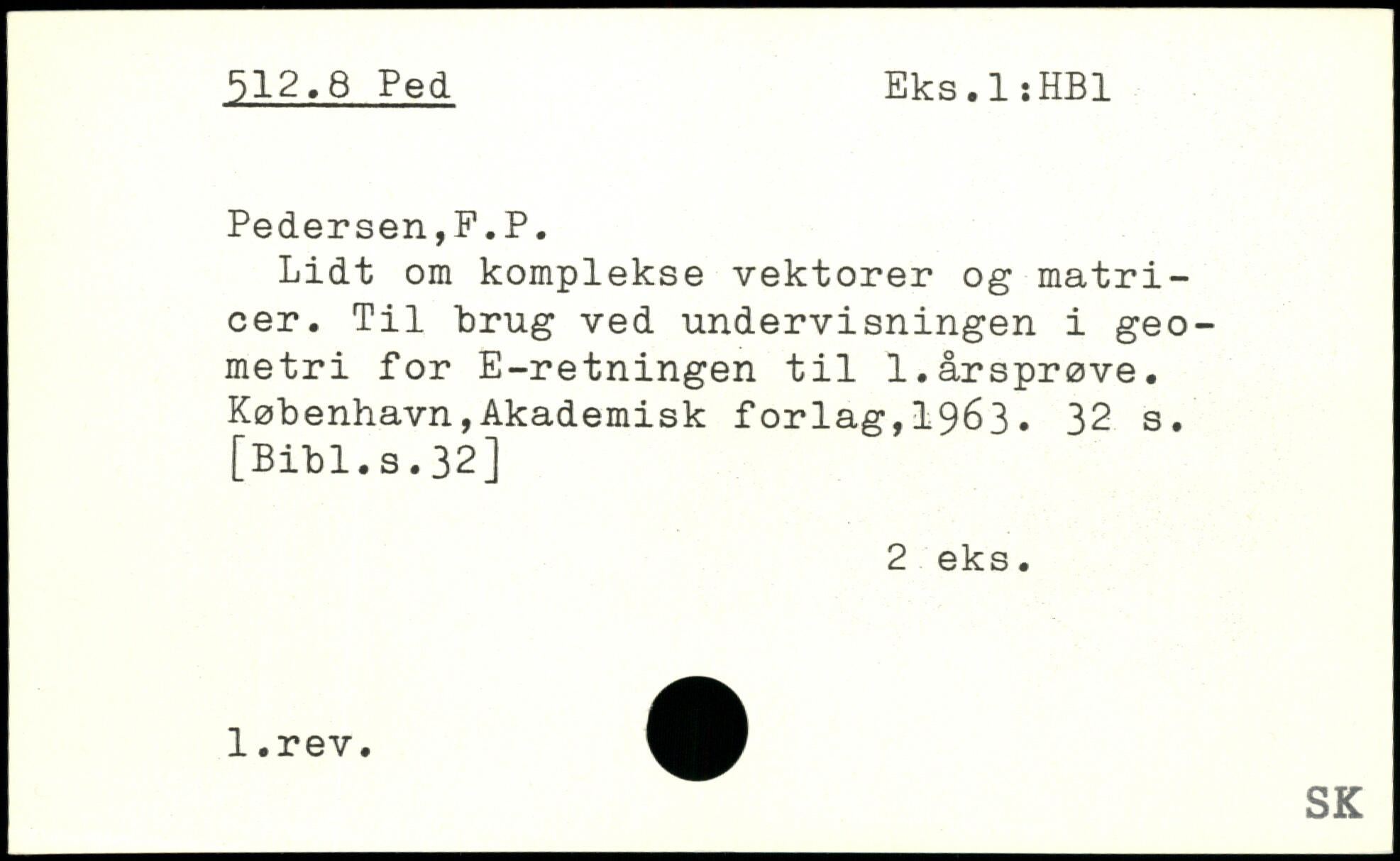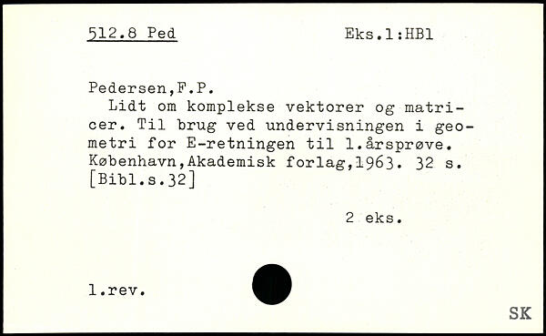 Lidt om komplekse vektorer og matricer. Til brug ved undervisningen i geometri for E-retningen til 1.årsprøve.