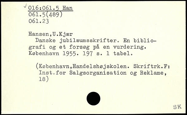Hansen,U.Kjær Hanske jubilæumsskrifter. En bibliografi og et forsøg på en vurdering.