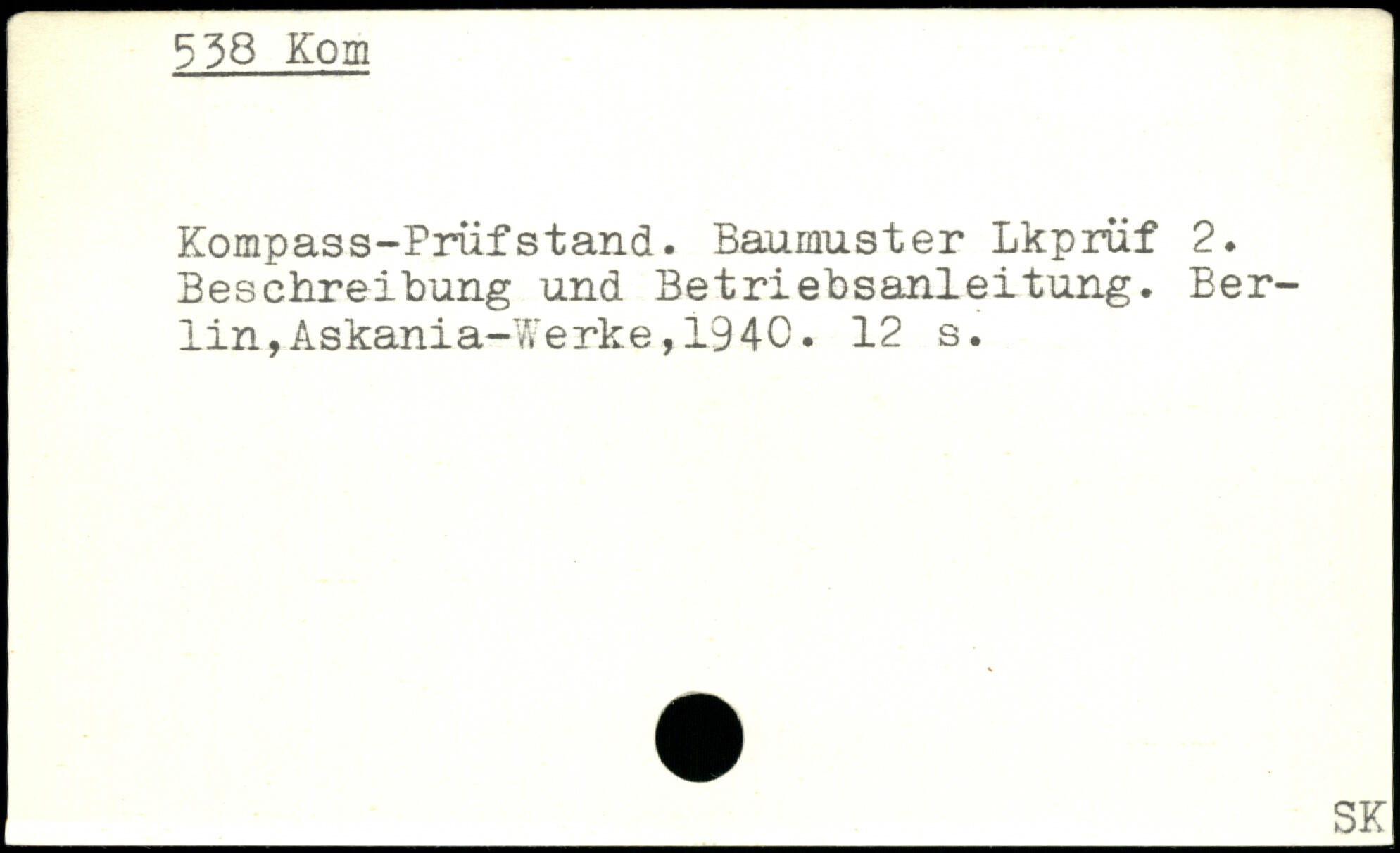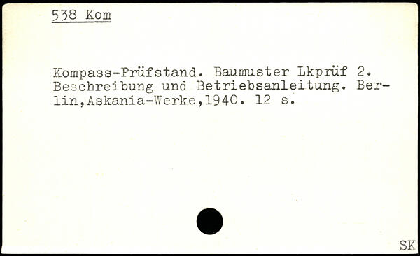 Kompass-Prüfstand. Baumuster Lkprüf 2. Beschreibung und Betriebsanleitung. Berlin, Askania-Werke,194C.