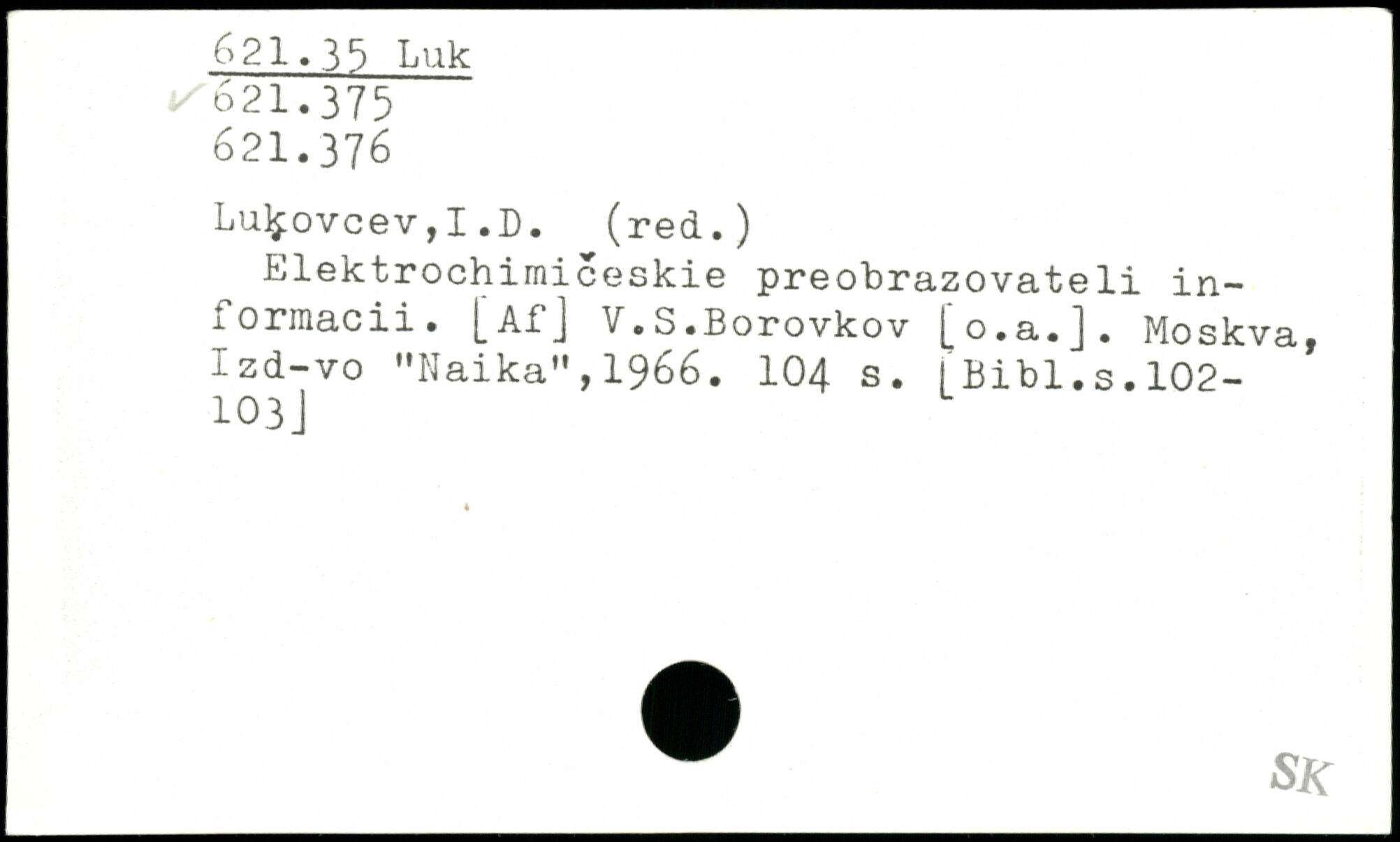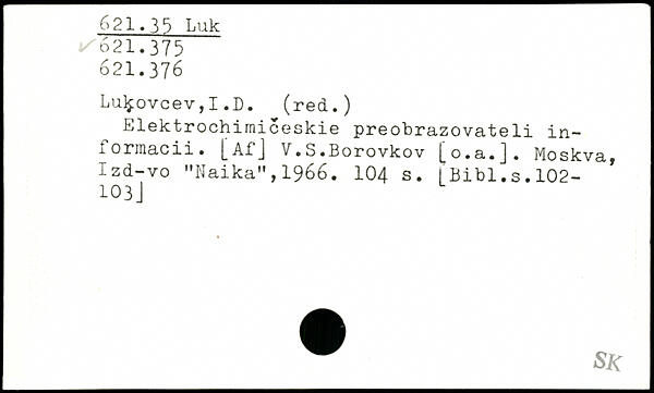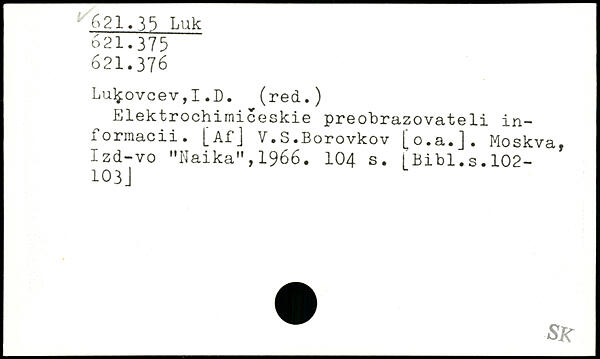 Lu^ovcev,I .D. (red.) Elektrochimiceskie preobrazovateli in-formacii. [AfJ V.S.Borovkov [o.a.]. Moskva, Izd-vo "Naika",1966. IO