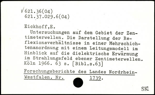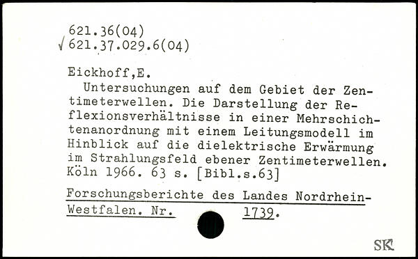Untersuchungen auf dem Gebiet der Zentimeterwellen. Die Darstellung der Reflexionsverhältnisse in einer Mehrschichtenanordnung mit einem Leitungsmodell im Hinblick auf die dielektrische Erwarmung im Strahlungsfeld ebener Zentimeterwellen.