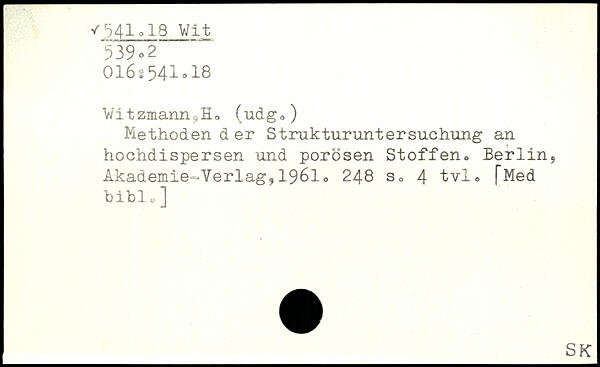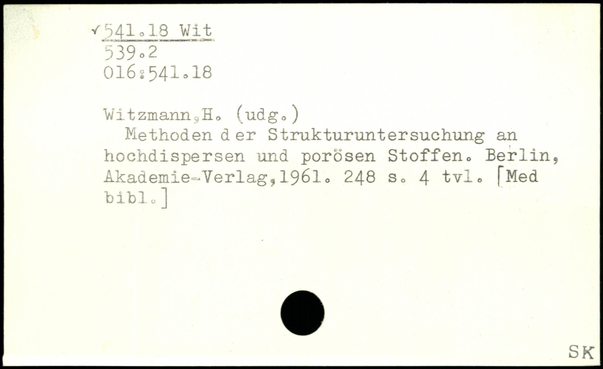 Witzmann<,Ho (udg,) Methoden d er StrukturUntersuchung an hochdispersen und porösen Stoffen, Berlin, Akademie-Verlag, 1.961 o