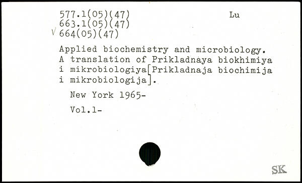Applied biochemistry and microbiology. A translation of Prikladnaya biokhimiya i mikrobiologiya[Prikladnaja biochimija i mikrobiologijaj.