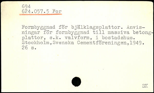 Pormbyggnad för bjälklagsplattor. Anvisningar för formbyggnad till massiva betongplattor, s.k. valvform, i bostadshus