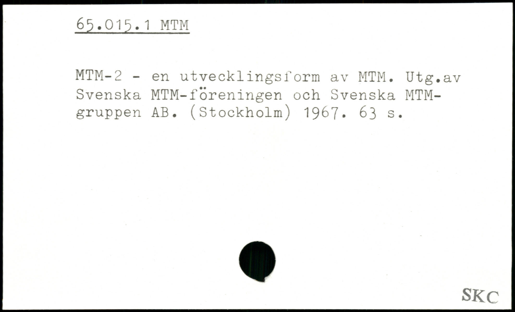 MTM-2 - en utvecklingsform av MTM. Utg.av Svenska MTM-föreningen och Svenska MTM-gruppen AB. (Stockholm) 1967.