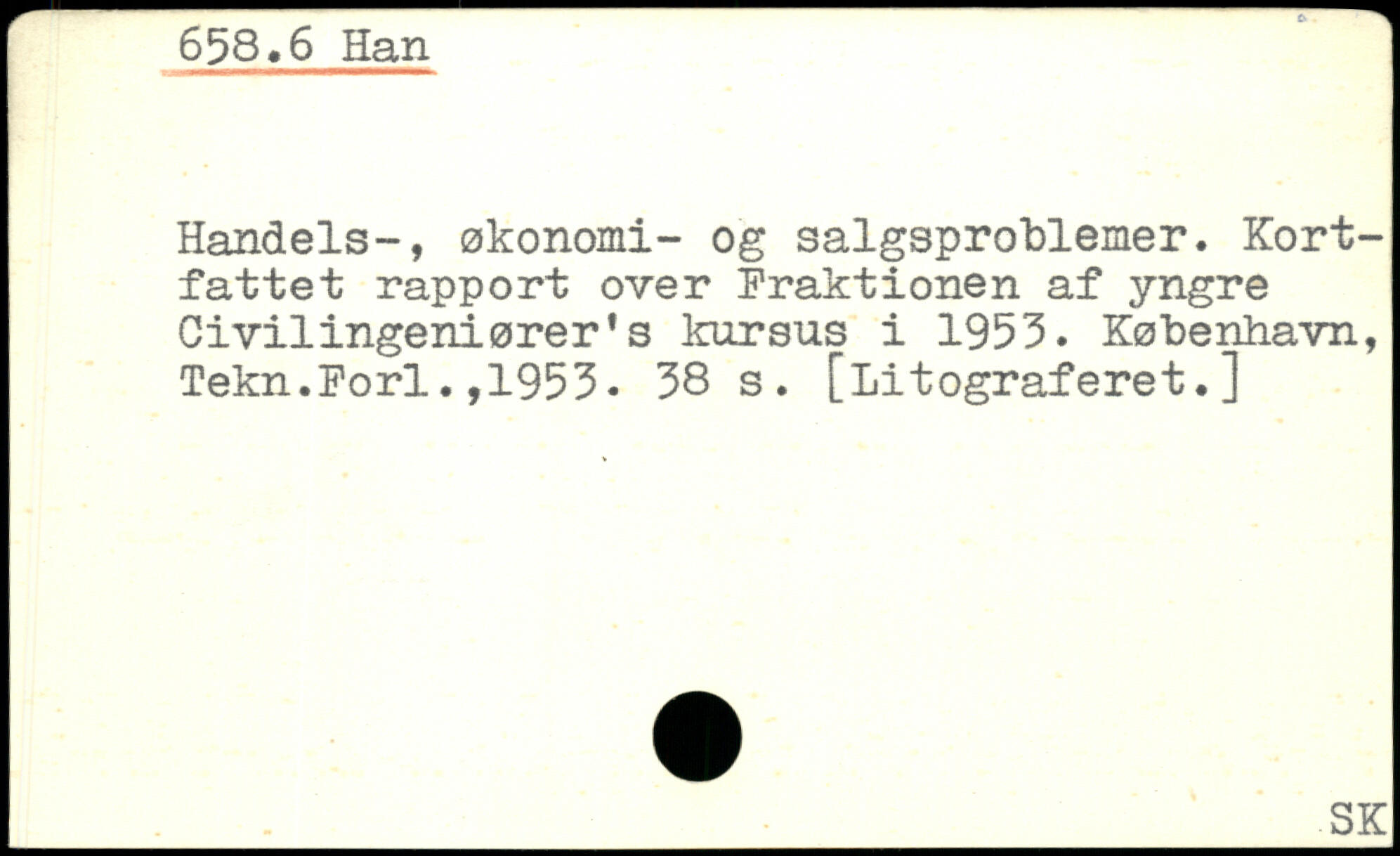 Handels-, økonomi- og salgsproblemer. Kortfattet rapport over Fraktionen af yngre Civilingeniører's leursus i 1953. København, Tekn.Forl.,1953.