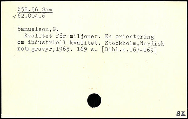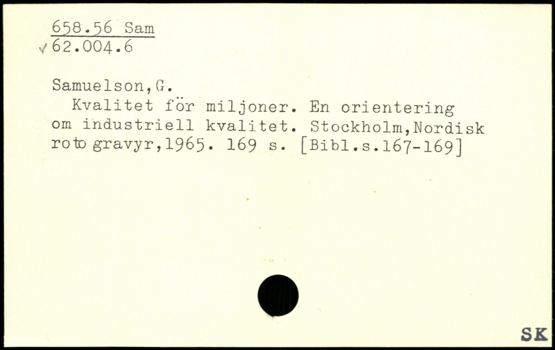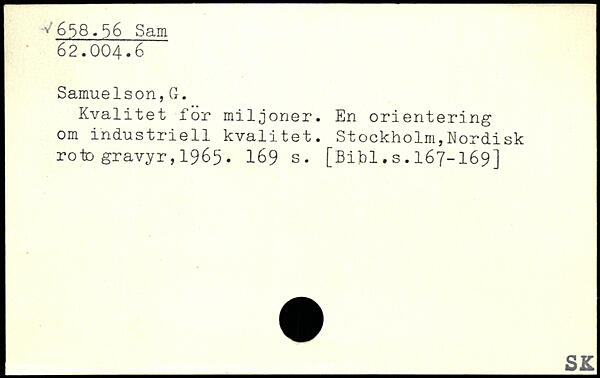 Kvalitet for miljoner. En orientering om industriell kvalitet.