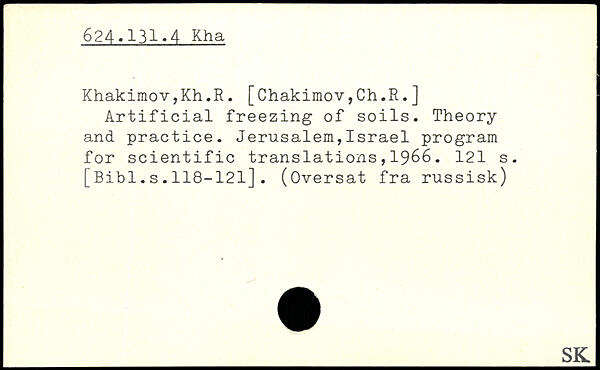 Khakimov,Kh.R. [Chakimov,Ch.R.] Artificial freezing of soils. Theory and practice. Jerusalem,Israel program for scientific translations,1966.