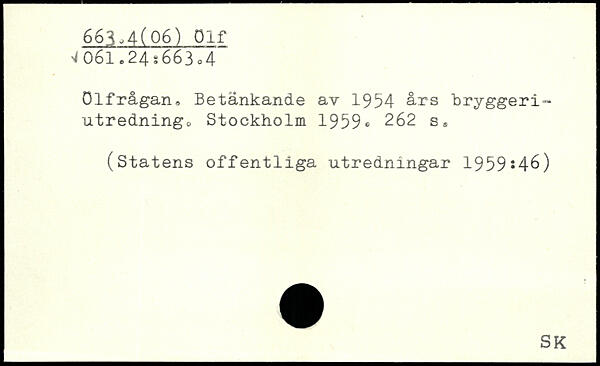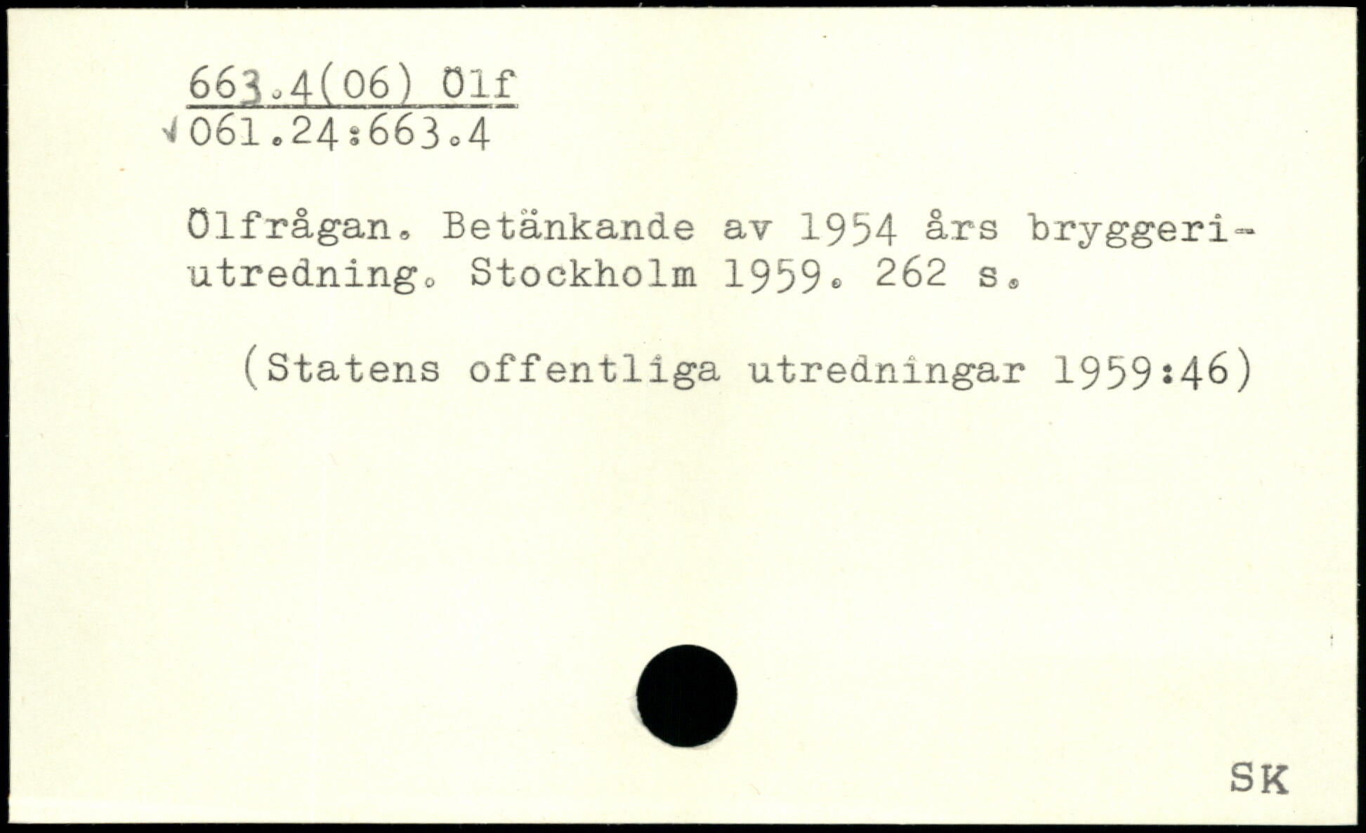 ölfrågan, Betänkande av 1954 års bryggeri-utredning