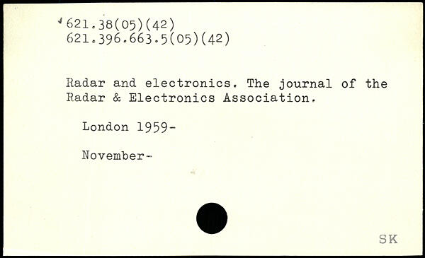 Radar and electronics. The journal of the Radar & Electronics Association.