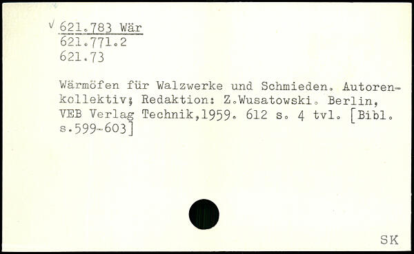 Wärmöfen für Walzwerke und. Schmieden,, Autorenkollektiv! Redaktion: Z,Wusatowski.