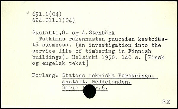 Tutkimus rakennusten puuosien kestoiäs-tä suomessa. (An investigation into the service life of timbering in Finnish buildings).