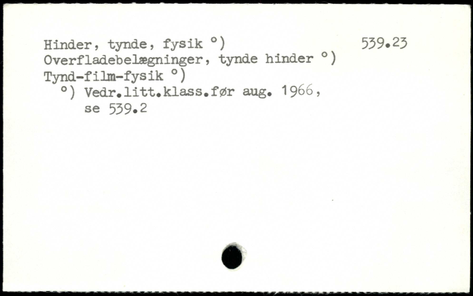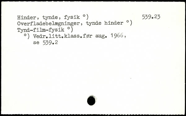 Hinder, tynde, fysik .) 559.23 Overfladebelægninger, tynde hinder .) Tynd-flim-fysik .) .) Vedr.litt.klass.før aug. 1966, se 539.2