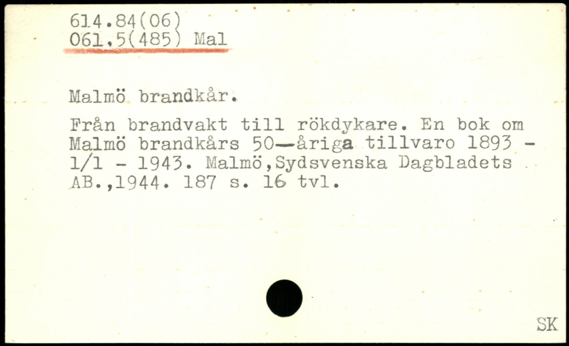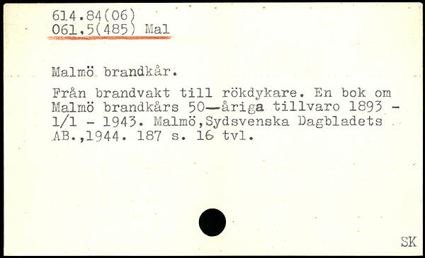 -■'vrs&mmmrnmsBmmmmmBmmmmmmmmmm. Malmö brandkår. Från brandvakt till rökdykare. En bok om Malmö brandkårs 50—åriga tillvaro 1893 -l/l - 1943. Malmö,Sydsvenska Dagbladets. AB.,1944.