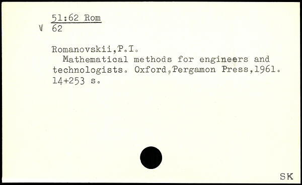 Mathematical methods for engineers and technologistso Oxford?Pergamon Press,1961®