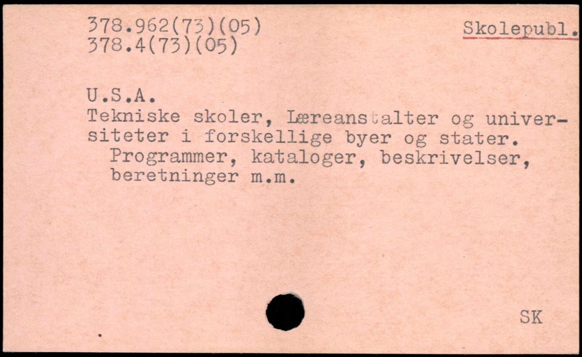 U.S.A. Tekniske skoler, Læreanstalter og universiteter i forskellige byer og stater. Programmer, kataloger, beskrivelser, beretninger m.m.