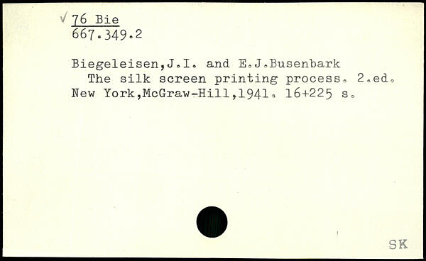 Biegeleisen,J.I. and E,J,Busenbark The silk screen printing process, 2,ed