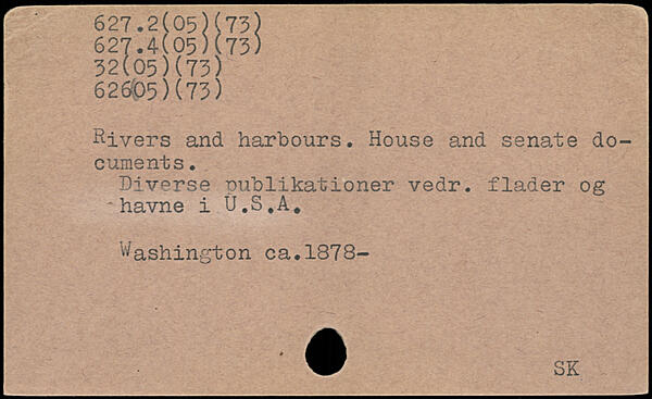 Rivers and harbours. House and senate do-euments. Diverse publikationer vedr. flader og. havne i U.S.A. Washington ca.1878-
