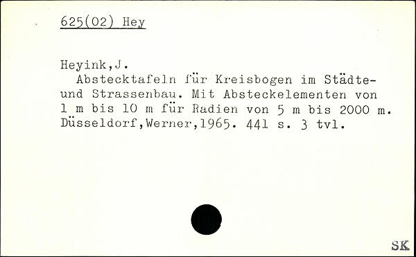 Abstecktafeln für Kreisbogen im Städte-und Strassenbau. Mit Absteckelementen von 1 m bis 10 m für Radien von 5 m bis 2000 m.