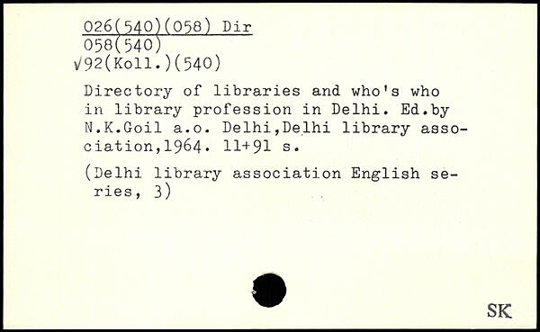 Directory of libraries and who's who in library profession in Delhi. Ed.by N.K.Goil a.o.