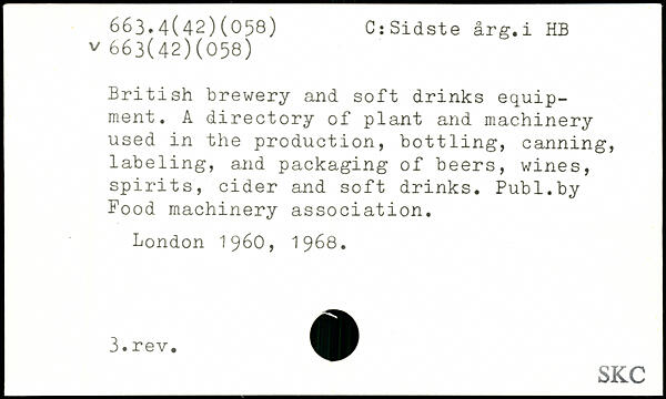 British brewery and soft drinks equipment. A directory of plant and machinery used in the production, bottling, canning, labeling, and packaging of beers, wines, spirits, cider and soft drinks.