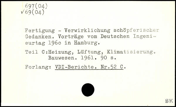Fertigung - Verwirklichung schöpferischer Gedanken, Vorträge vom Deutschen Ingenieurtag 1960 in Hamburg. Teil Cs Heizung,