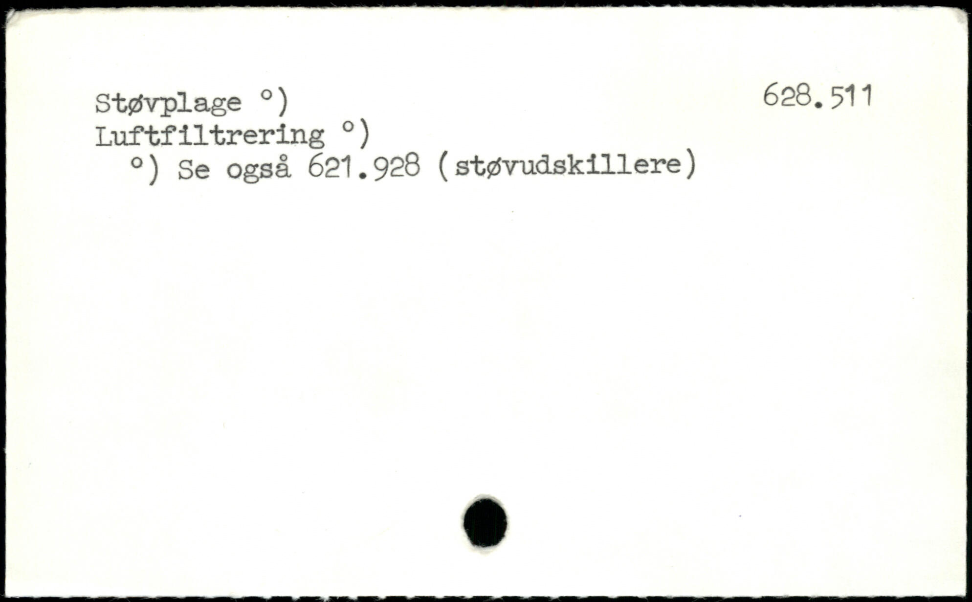 Støvplage .) 628.5II Luftfiltrering .) .) Se også 621.928 (støvudskillere)