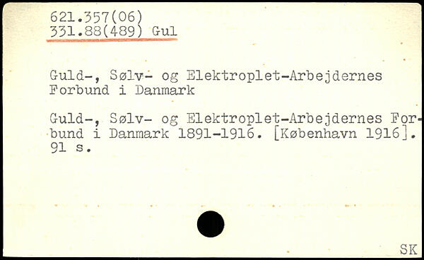 Guld-, Sølv- og Elektroplet-Arbejdernes Forbund i Danmark Guld-, Sølv- og Elektroplet-Arbejdernes Forbund i Danmark 1891-1916.
