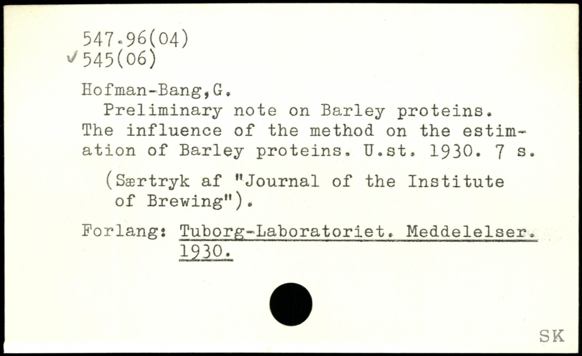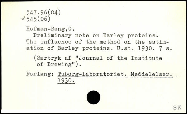 Preliminary note on Barley proteins. The influence of the method on the estimation of Barley proteins. U.st. 1930.