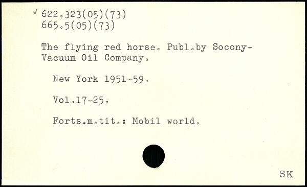 The flying red horse, Publohy Socony-Vacuum Oil Company,, hew York 1951-59.