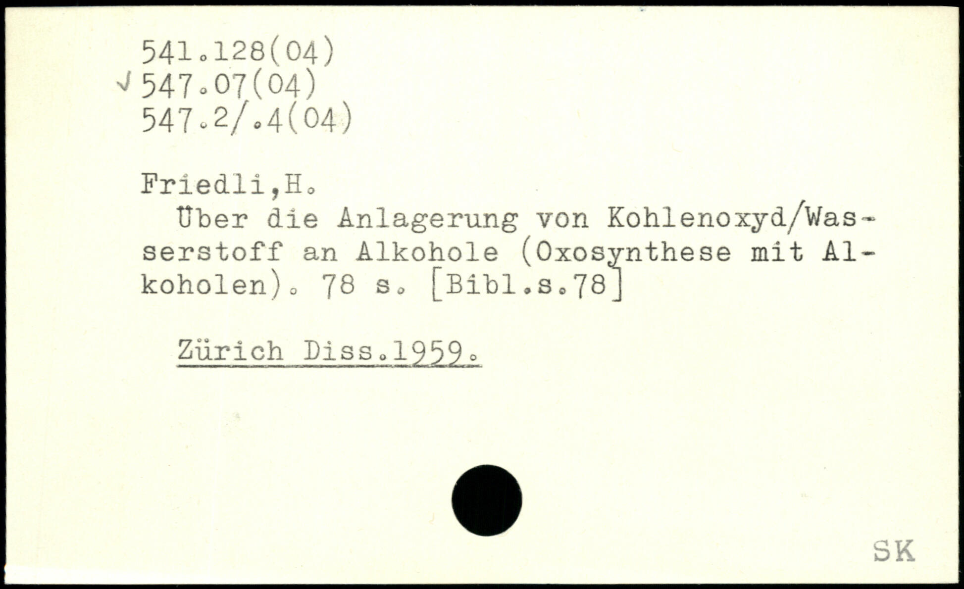 Uber die Anlagerung von Kohlenoxyd/Was-serstoff an Alkohole (OxoSynthese mit Alkoholen)