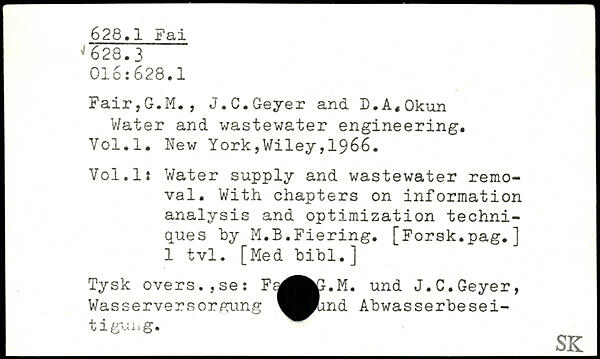 Fair,G.M., J.C.Geyer and D.A.Okun Water and wastewater engineering.