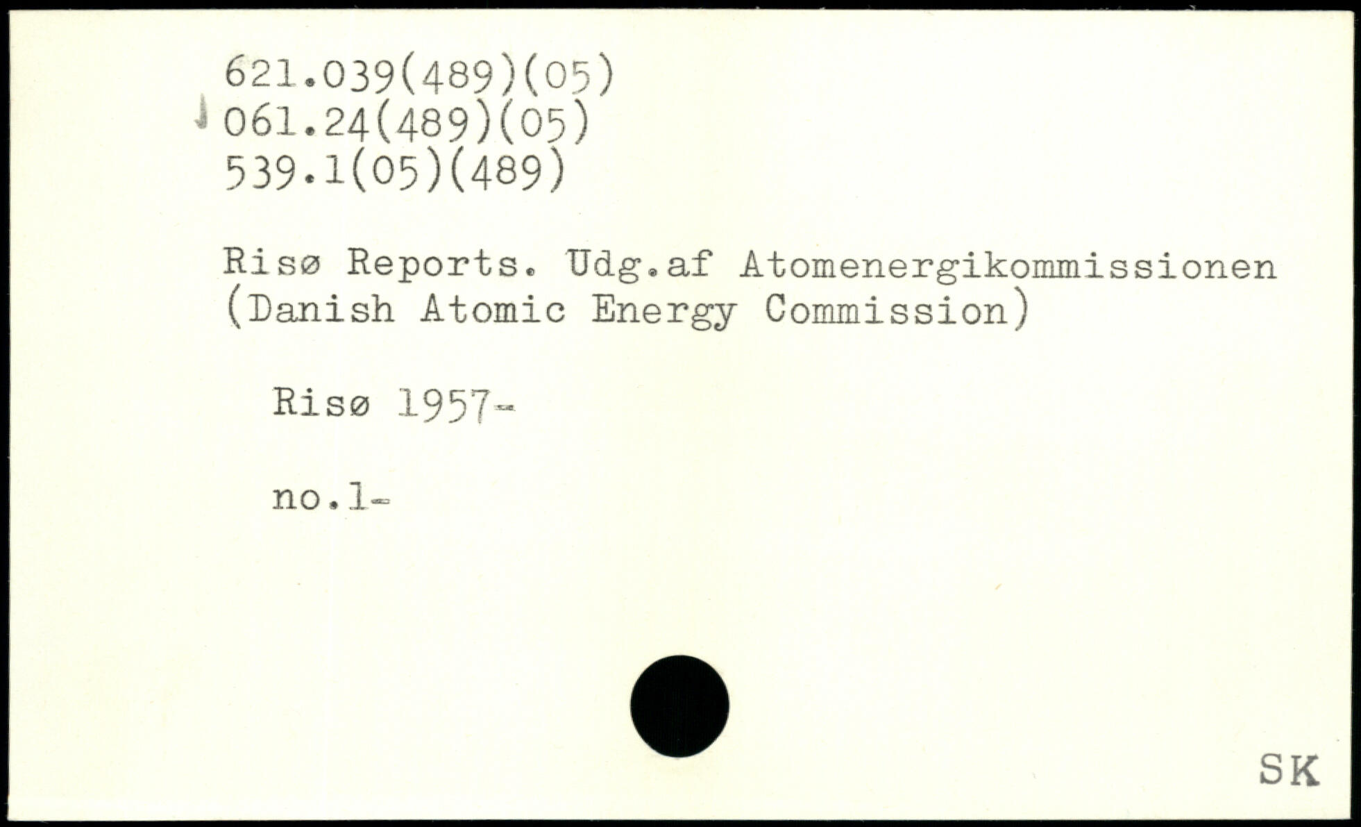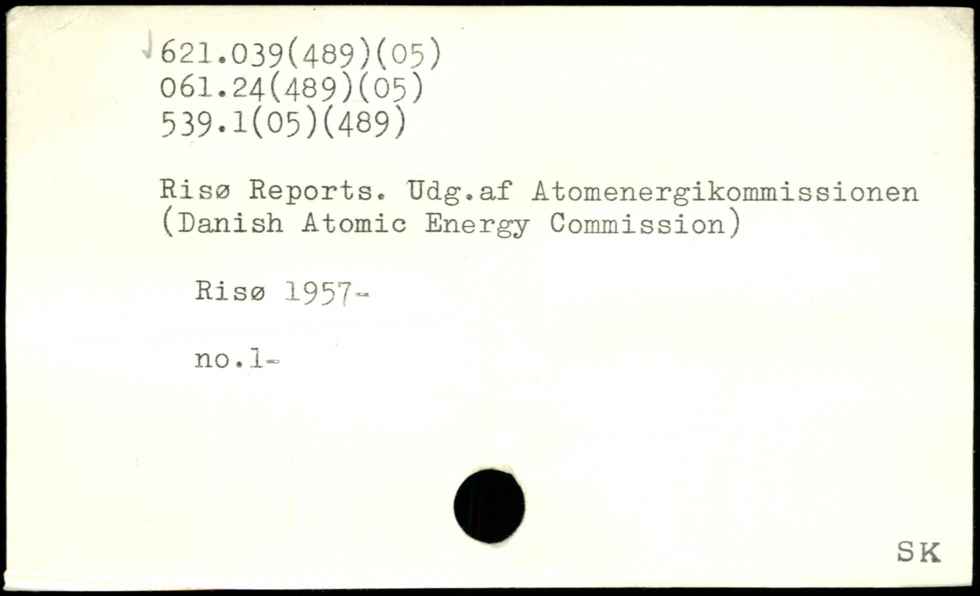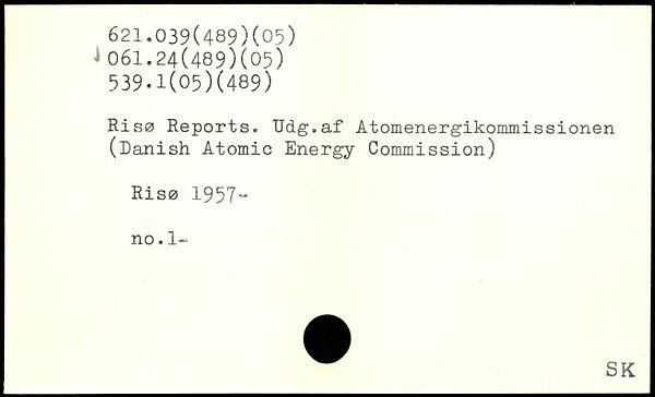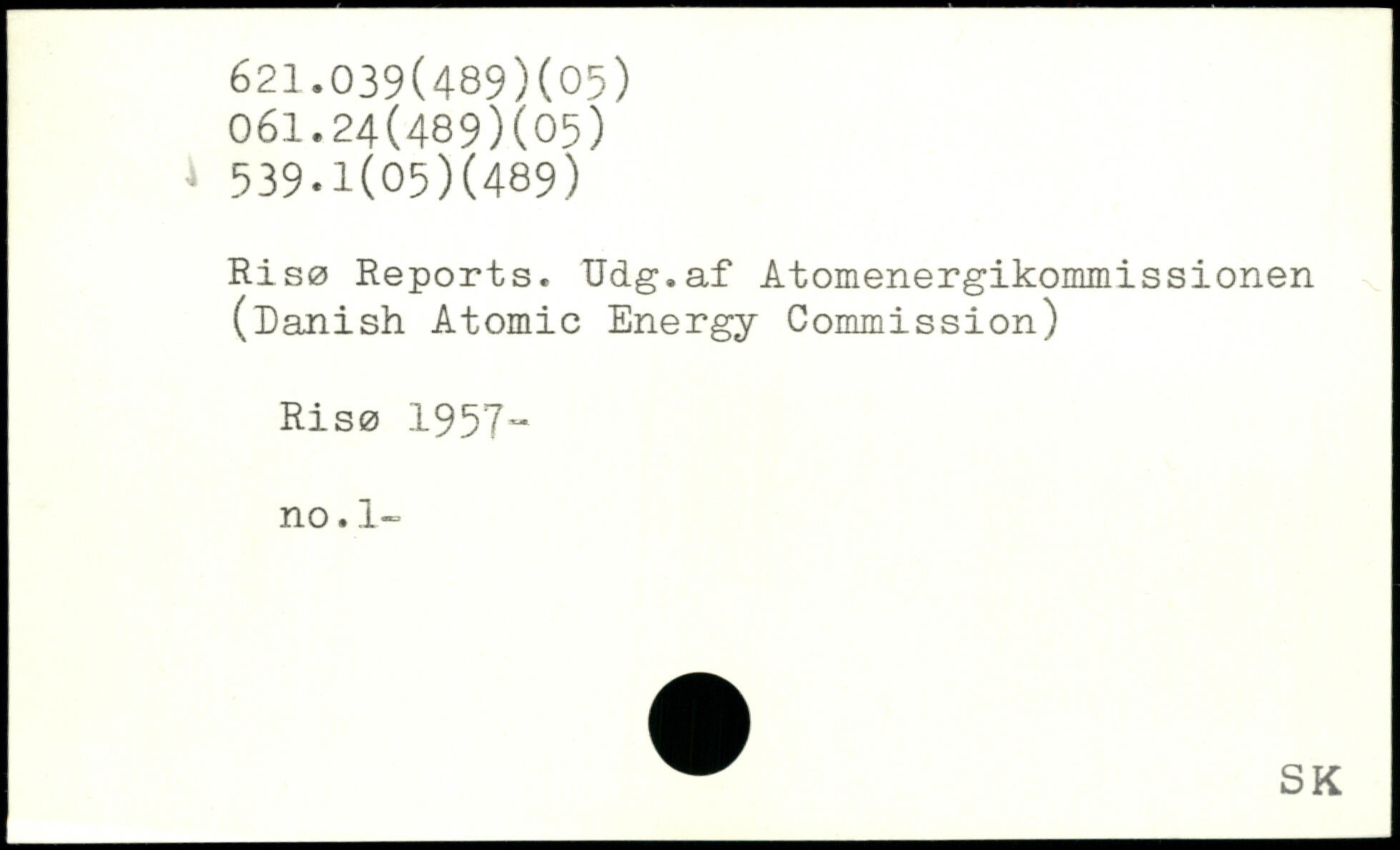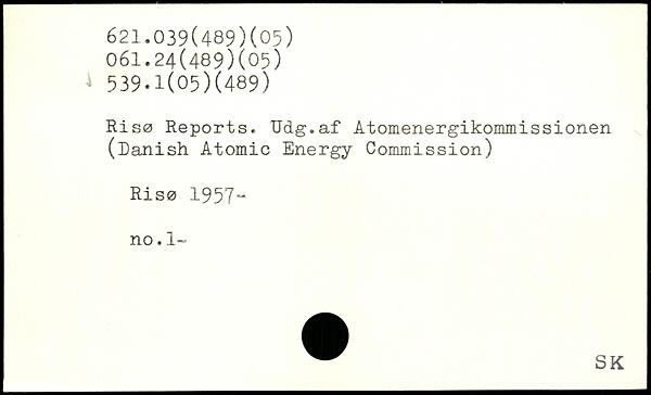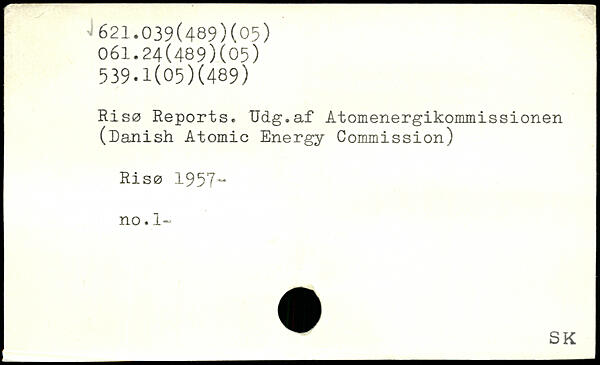 Risø Reports. Udg.af Atomenergikommissionen (Danish Atomic Energy Commission) Risø 1957“ no. 1-