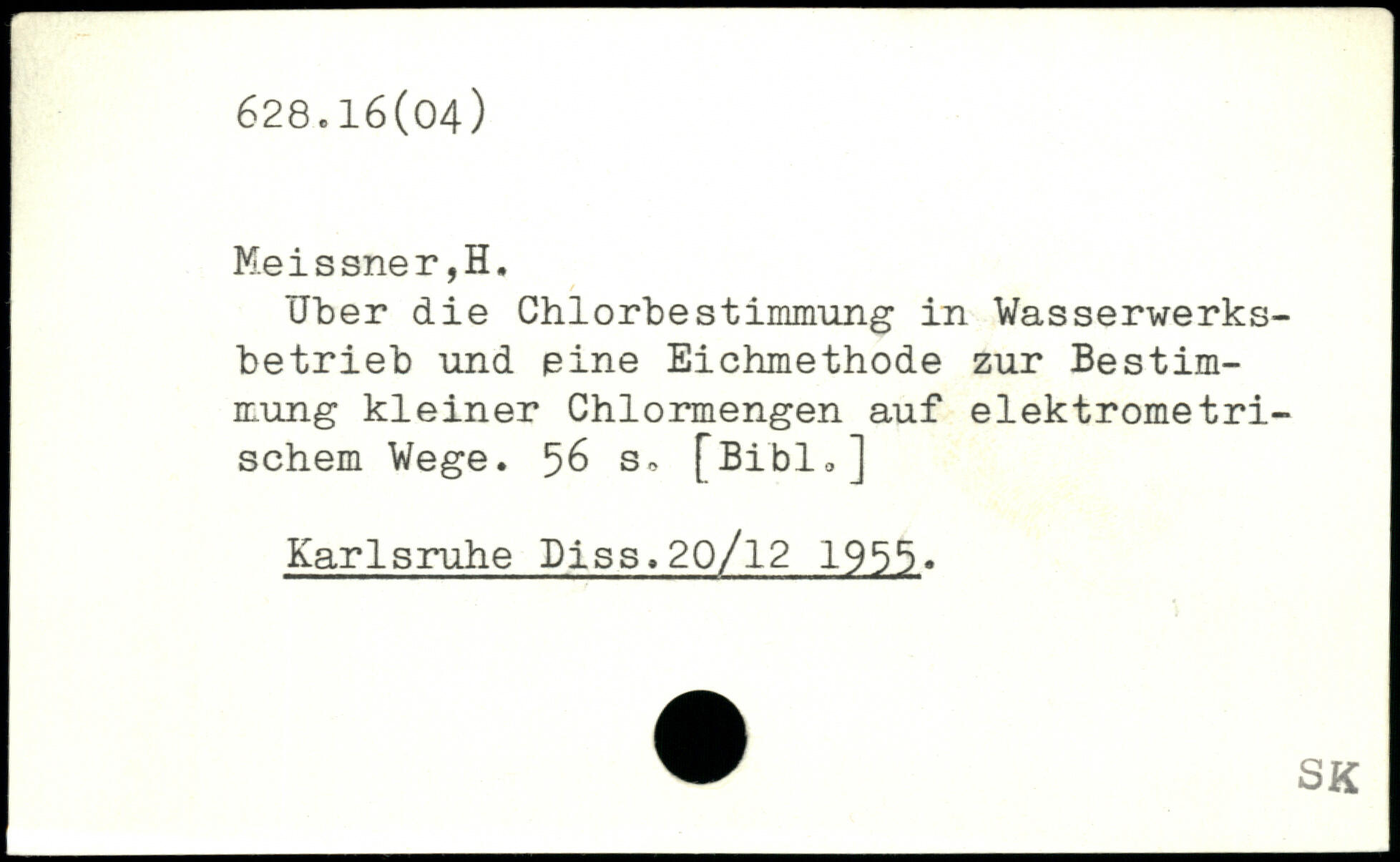 über die ChiorbeStimmung in Wasserwerksbetrieb und eine Eichmethode zur Bestimmung kleiner Chlormengen auf elektrometri-schem Wege.