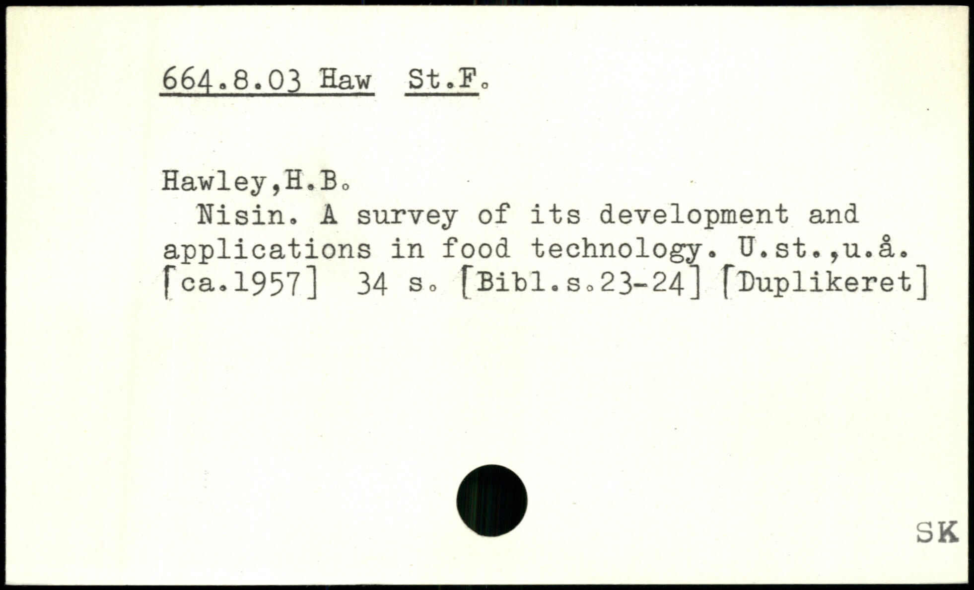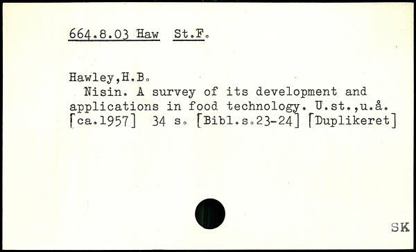 Nisin. A survey of its development and applications in food technology. U.st.,u.a. fca.1957]