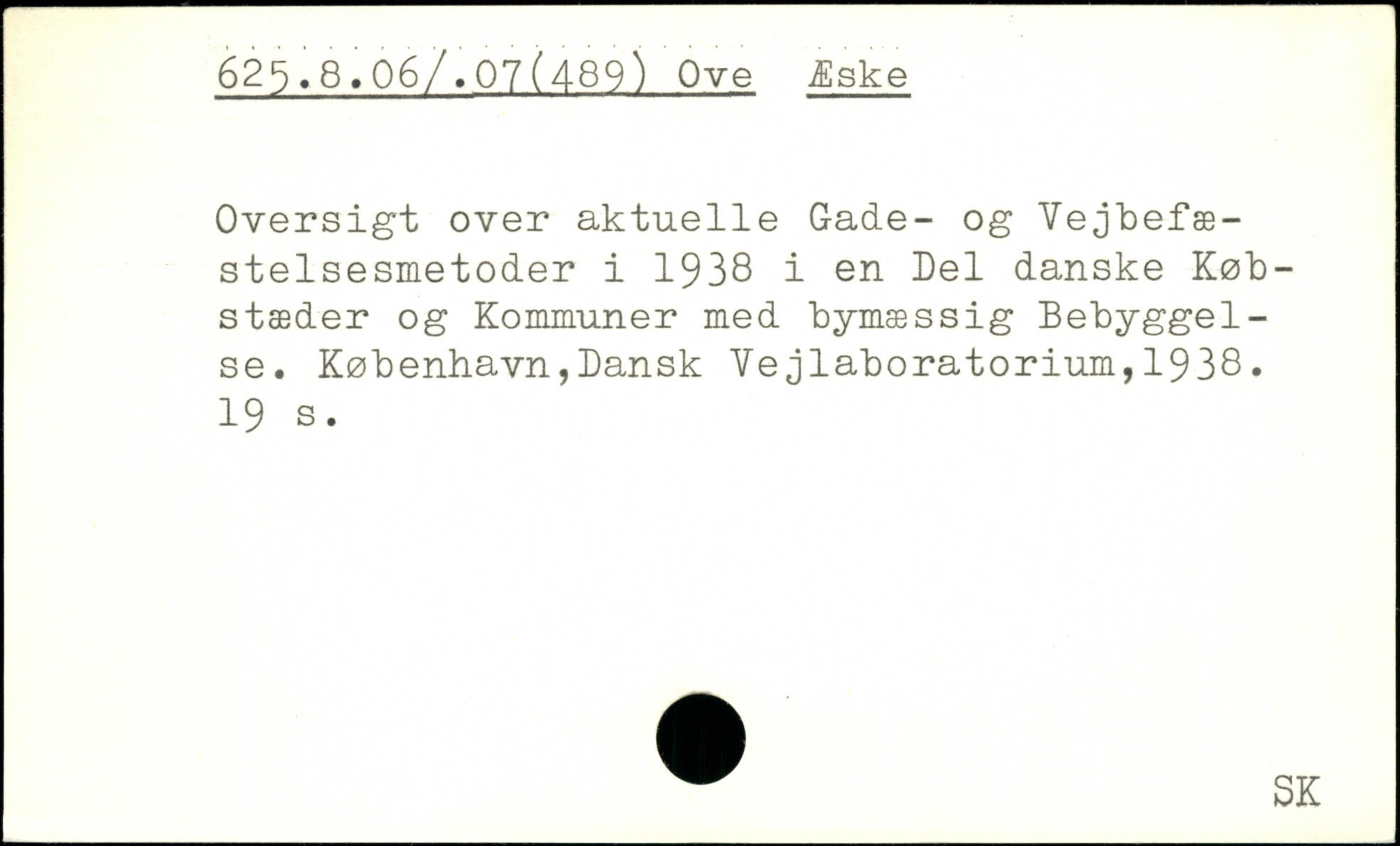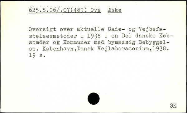 Oversigt over aktuelle Gade- og Vejbefæ-stelsesmetoder i 1938 i en Del danske Købstæder og Kommuner med bymæssig Bebyggelse.