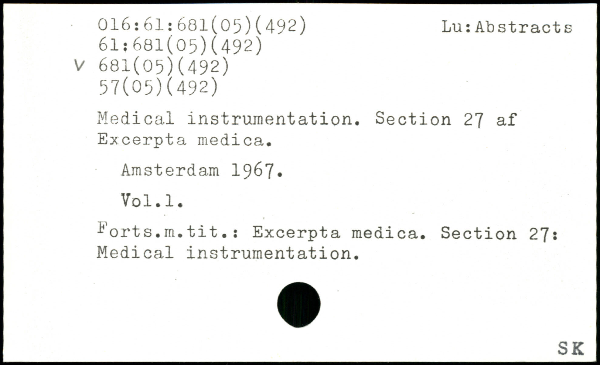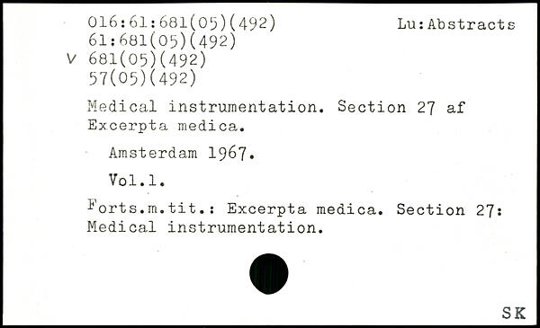 Medical instrumentation. Section 27 af Excerpta medica. Amsterdam 196 7.