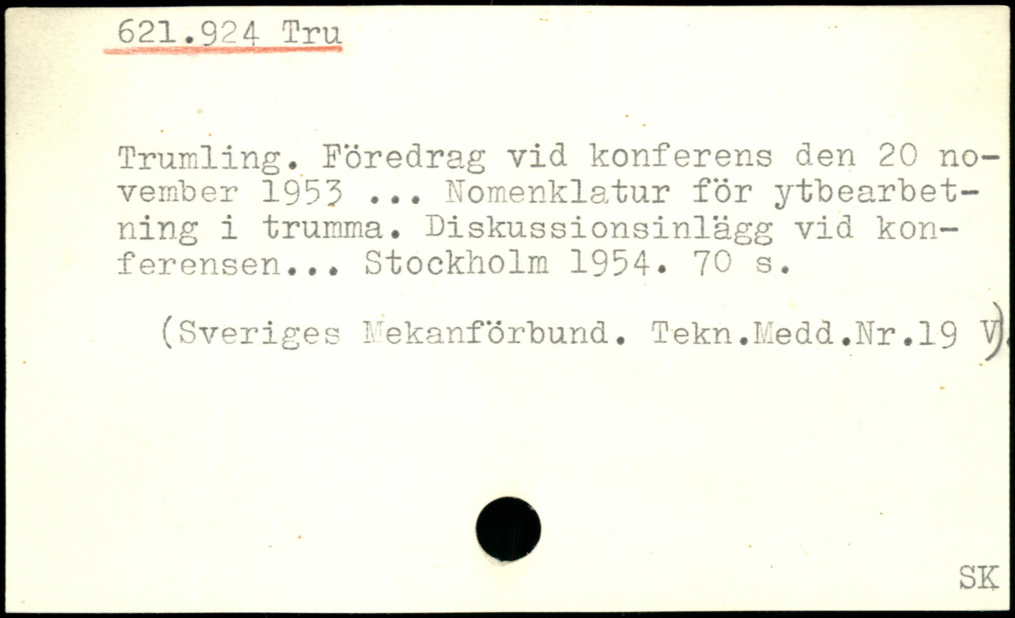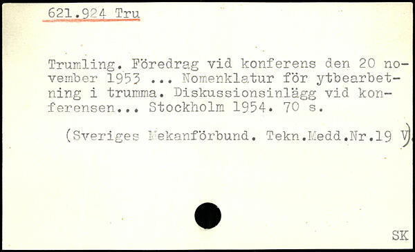 Trumling. Föredrag vid konferens den 20 november 1955 ,., Nomenklatur för ytbearbet-ning i trumma. Diskussionsinlägg vid konferensen...