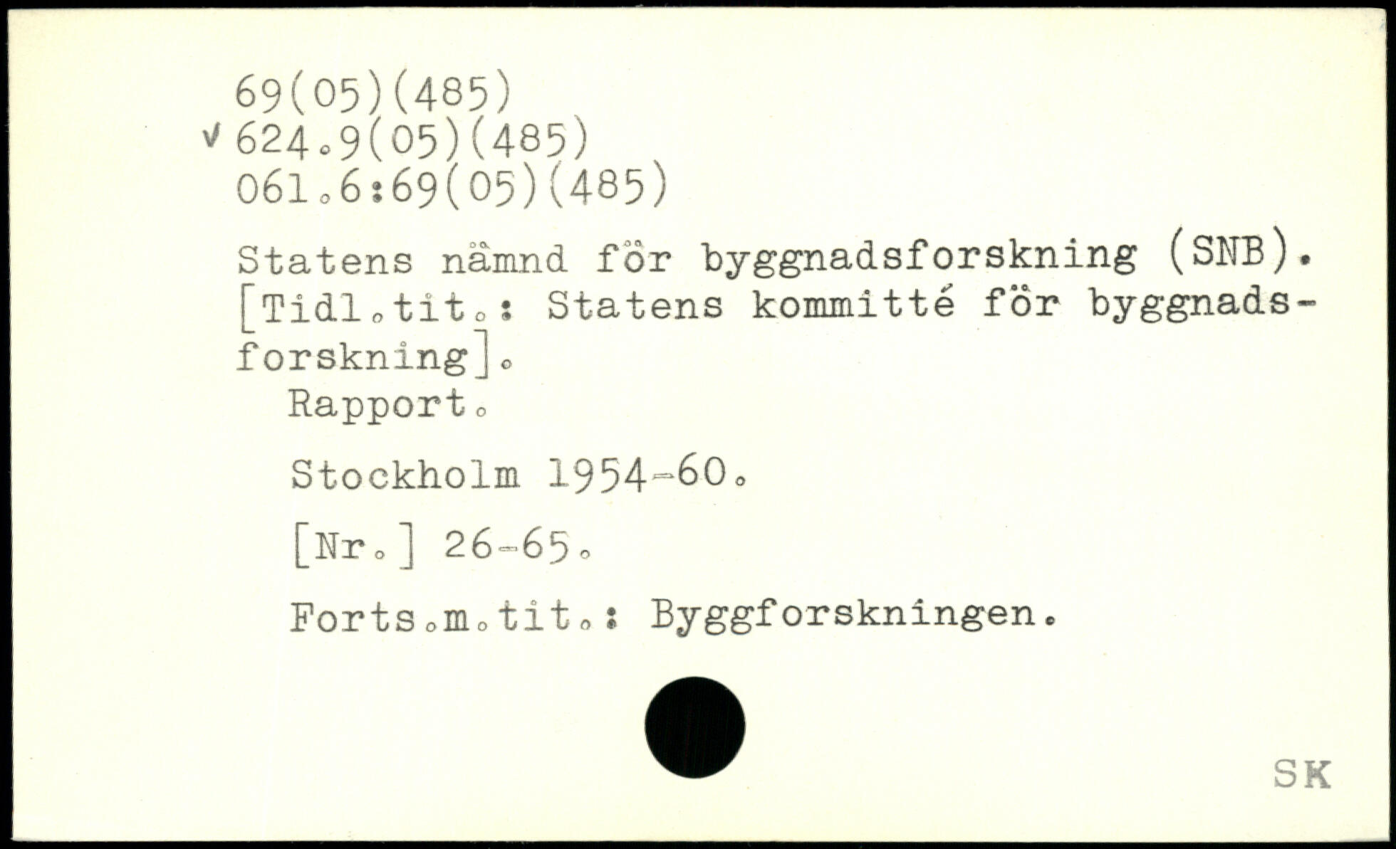 Statens nämnd för byggnadsforskning (SNB). [Tidlotito. Statens kommitté för byggnads- f orskning] o Rapport o